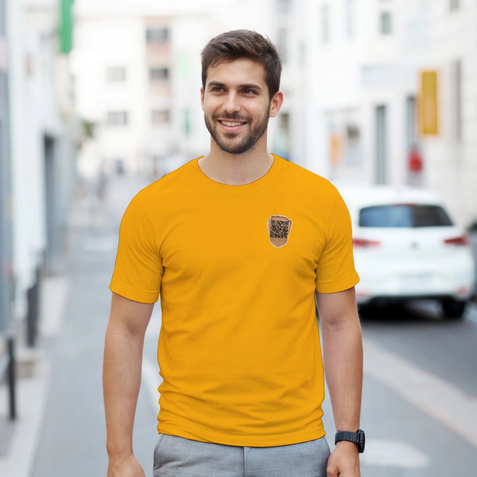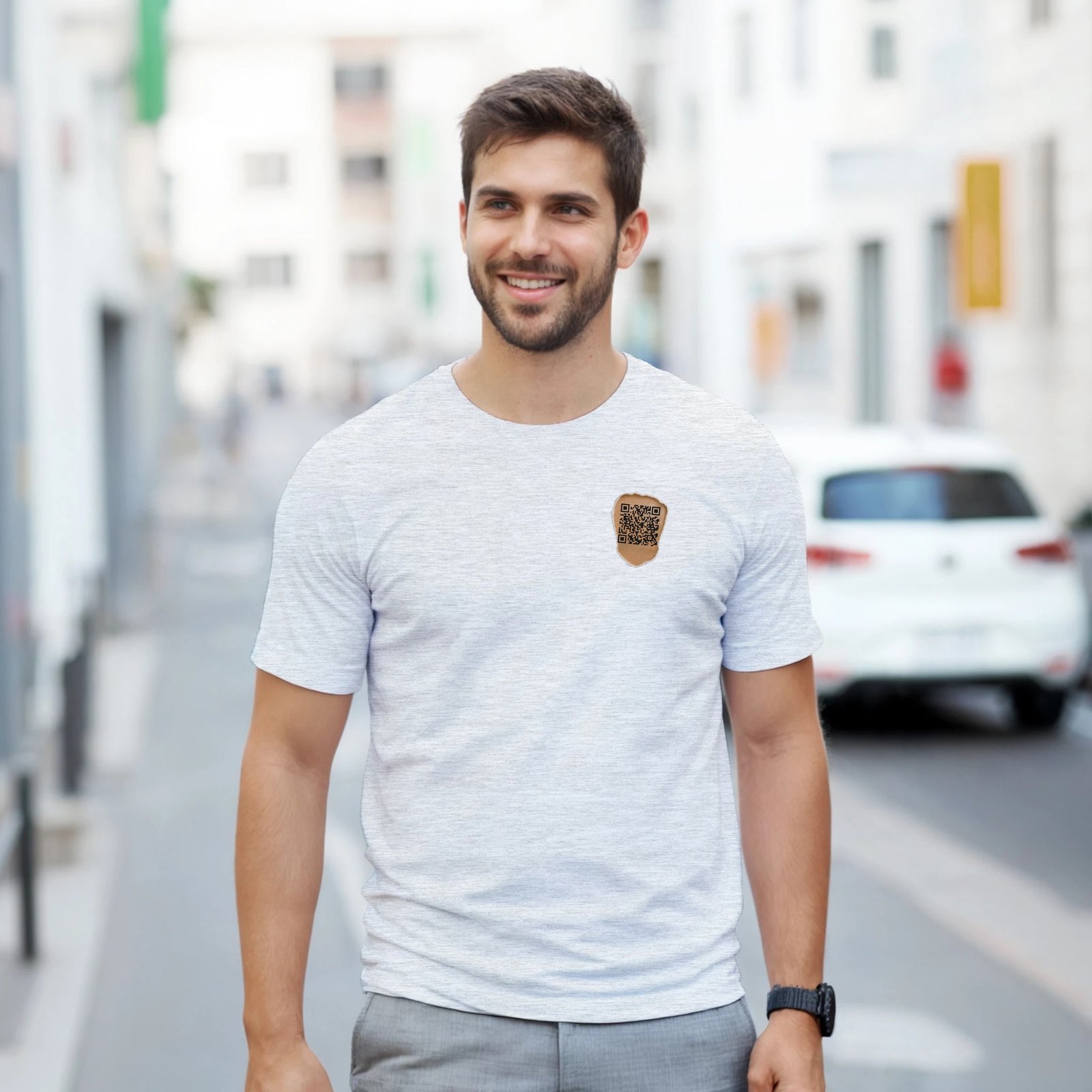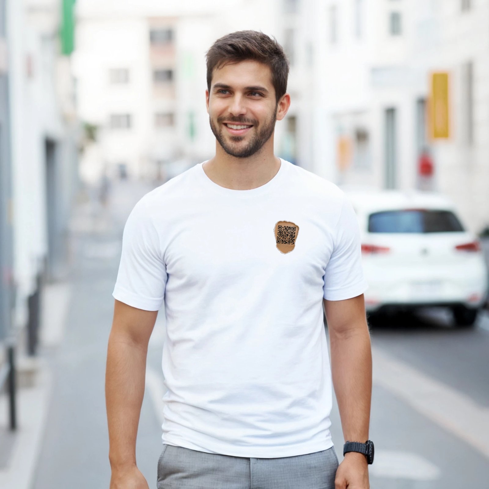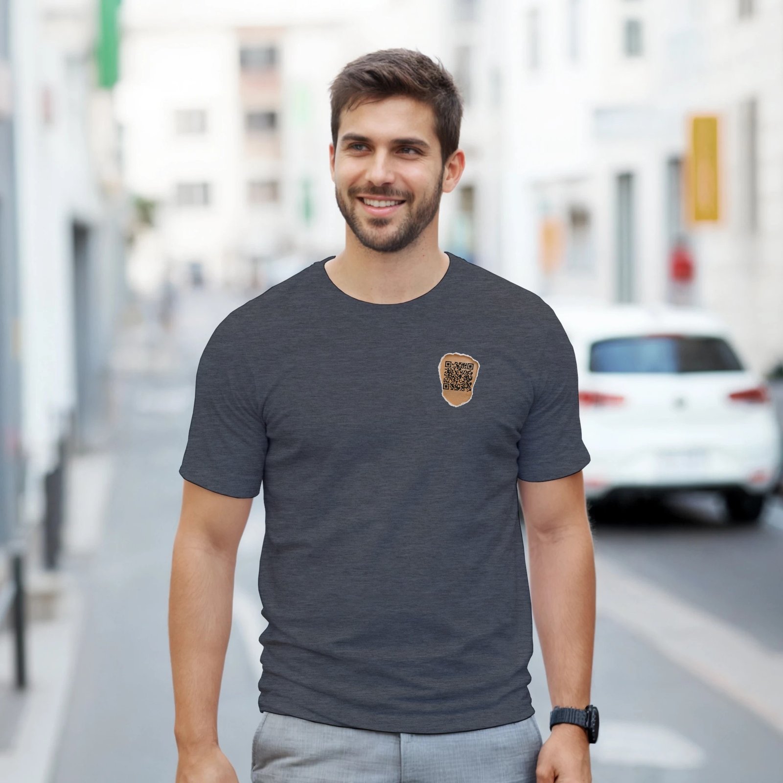 Turn heads with the code on your chest that leads to any destination you want at any moment: your website, your YouTube channel, your Instagram, your company, or wherever you choose.