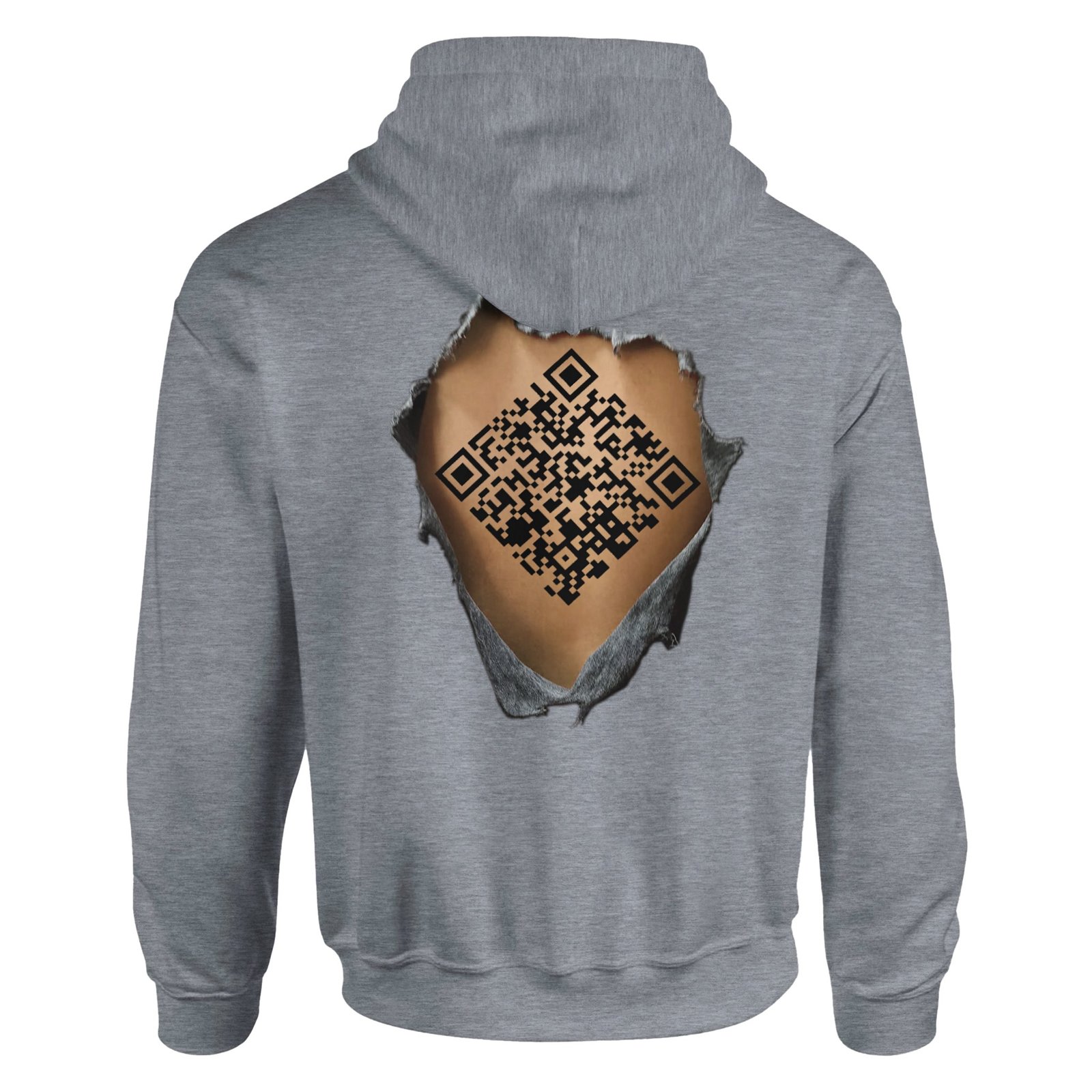 + Free ShippingHoodie with a cool back cutout that shows off your tattoo. The tattoo on the back is a QR code that you can change infinitely and super easily — so it can lead wherever you want, whenever you want.